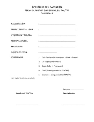 Contoh Pengisian Formulir Pendaftaran Dan Berkas Pendukung Lain Salut Kartini Rembang